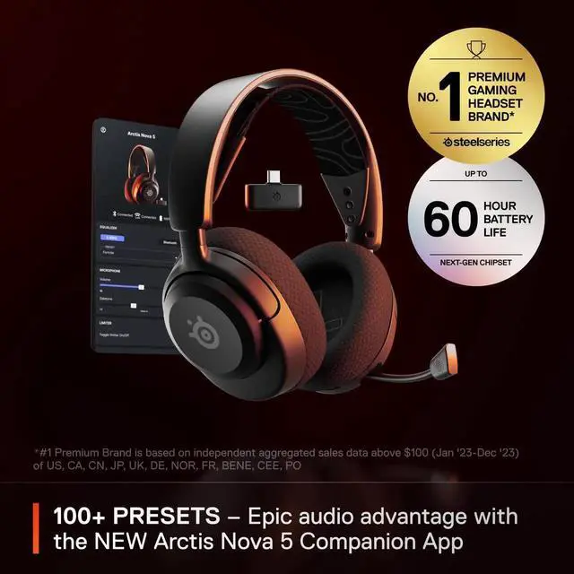 • 100+ GAME AUDIO PRESETS: Unlock tailored audio presets for top games like GTA V, FIFA, Call of Duty, and more, with the Arctis Nova 5 Companion App