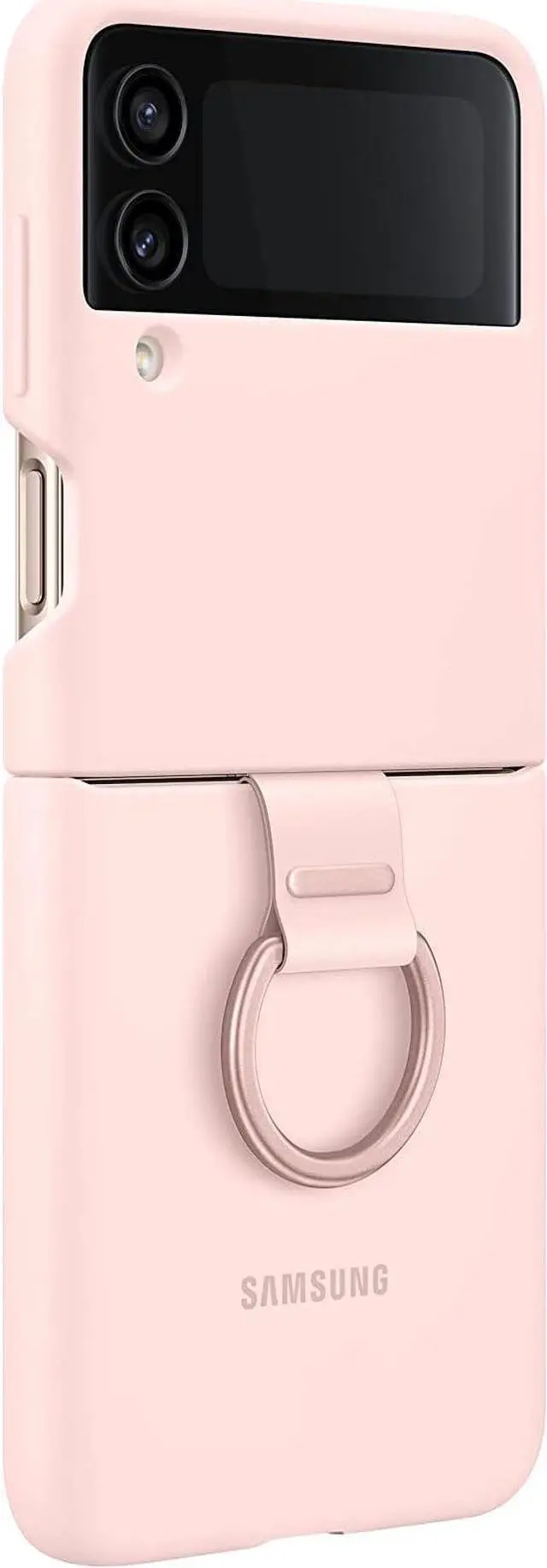 SLIP ON AND HOLD TIGHT: Hold your Galaxy Z Flip4 smartphone securely with the ring grip on the back of your Silicone Cover with Ring; Put your finger into the ring and worry less about dropping your phone while you text and share