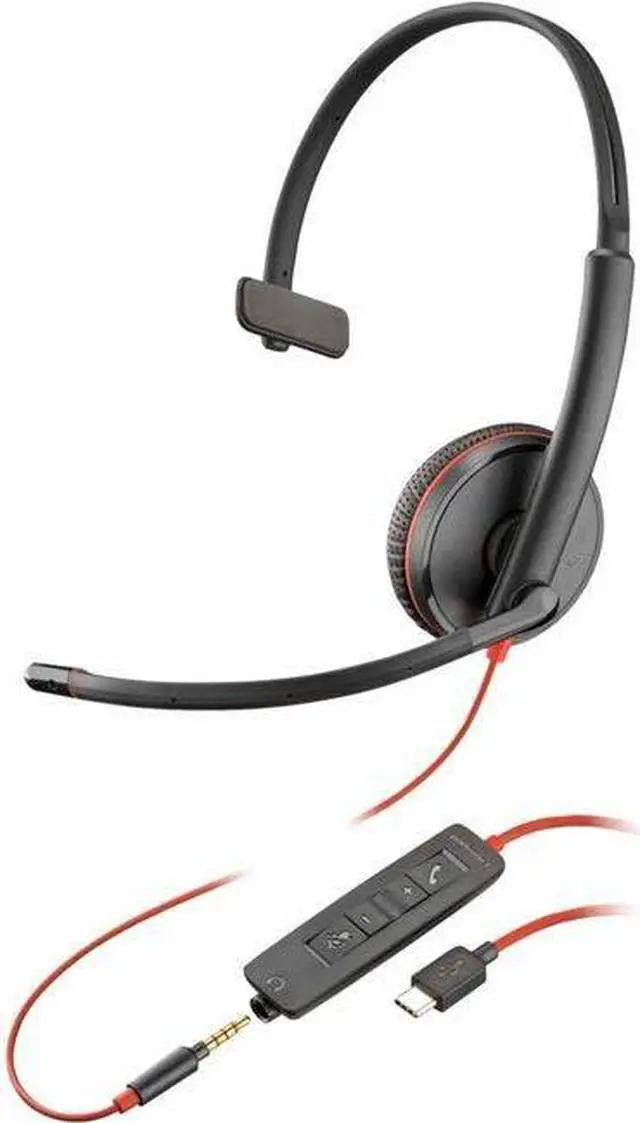 HP Poly Blackwire C3215 Monaural Headset + Carry Case - Mono - Mini-phone ( 3.5 mm), USB Type C - Wired - 32 Ohm - 20 Hz - 20 kHz - Over-the-head, On-ear - Monaural - Ear-cup - 7.40 ft Cable - Noise Cancelling, Omni-directional Microphone - Noise Canceling - Black