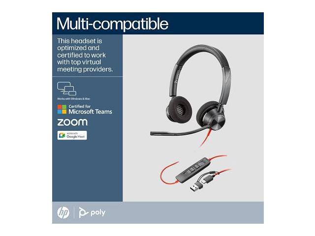 Poly Blackwire 3320 Stereo Microsoft Teams Certified USB-C Headset + USB-C/A Adapter - Microsoft Teams Certification - Stereo - USB Type C, Mini-phone (3.5mm) - Wired - 32 Ohm - On-ear - Binaural - Ea