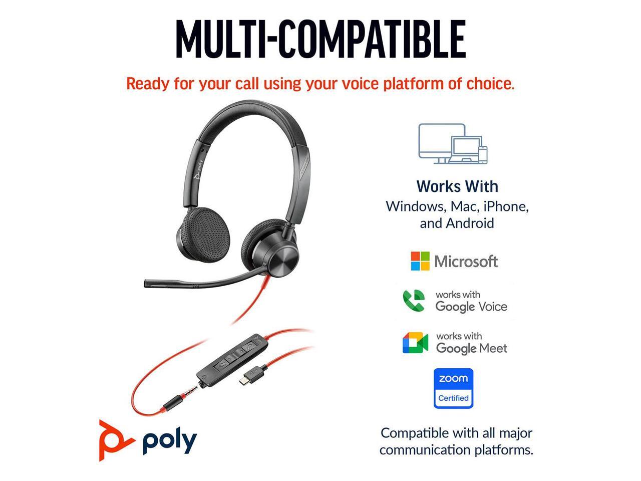 Poly Blackwire 3325 Stereo USB-C Headset +3.5mm Plug +USB-C/A Adapter - Stereo - USB Type C, Mini-phone (3.5mm) - Wired - 32 Ohm - On-ear - Binaural - Ear-cup - 7 ft Cable - Omni-directional Microphon