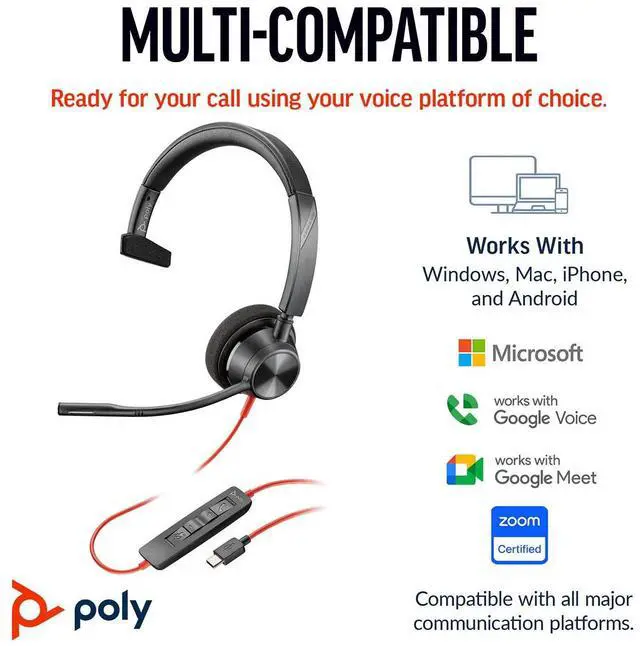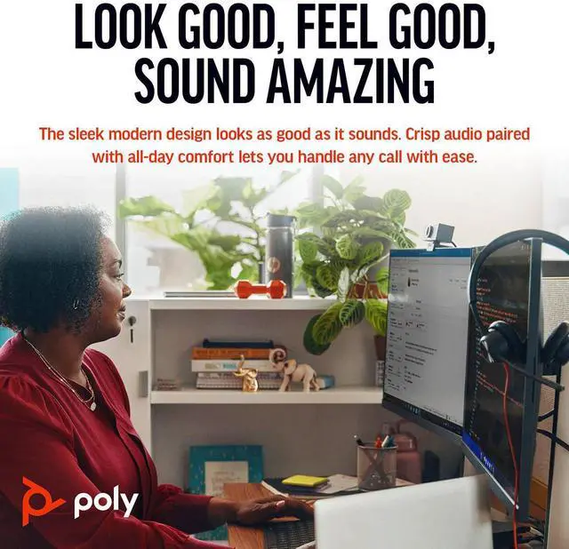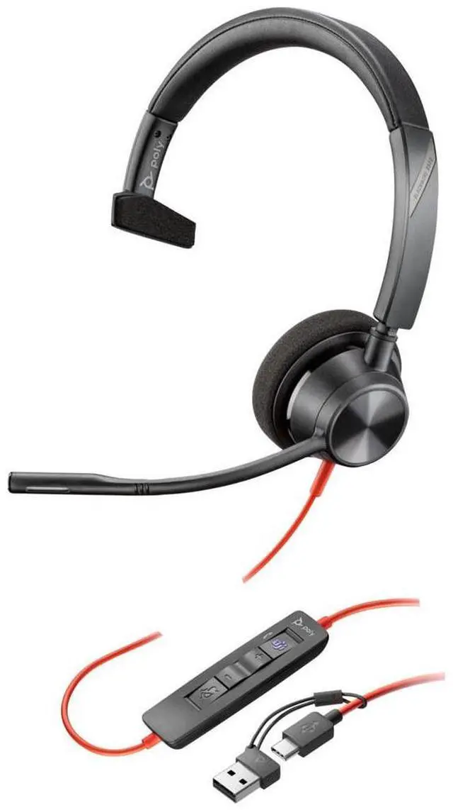 Style, comfort and audio qualityBuilt for style with a sleek design that focuses on comfort and reliability. Poly signature audio quality so you know you will sound great. And intuitive and simple features so every user can connect to their preferred device simply and easily. Connect quickly and easily The Blackwire 3300 Series is completely plug-n-play with USB devices, so users can take calls in the office or on the go. Its robust design delivers reliability you can count on. This is the hassle-free headset you've been looking for. Look good, feel good, sound amazing Boost your on-the-call confidence with professional-quality audio and a customized fit with a headset that can connect to your devices quickly and easily and is ready to go with you wherever you go.