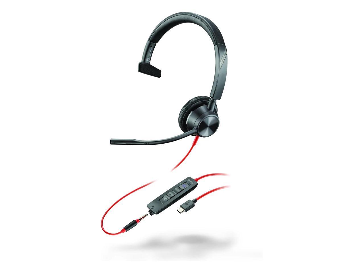 Poly Blackwire 3315 Headset - Microsoft Teams Certification - Mono - USB Type C, Mini-phone (3.5mm) - Wired - 32 Ohm - On-ear - Monaural - Ear-cup - 7 ft Cable - Omni-directional Microphone - Black