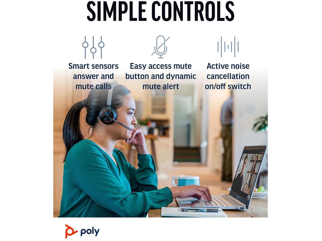 Poly Voyager Focus 2 USB-C-C Headset +USB-C/A Adapter + Charging Stand - Google Assistant, Siri - Stereo - USB Type C - Wired/Wireless - Bluetooth - 298.6 ft - Over-the-head - Binaural - Supra-aural -