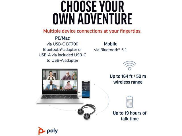 Poly Voyager Focus 2 Headset - Microsoft Teams Certification - Google Assistant, Siri - Stereo - USB Type C - Wired/Wireless - Bluetooth - 298.6 ft - Over-the-head - Binaural - Supra-aural - 4" C