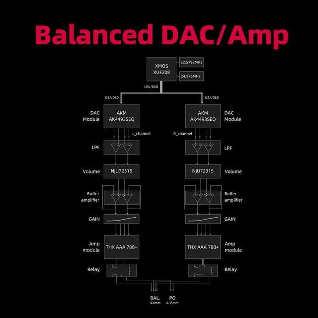 The XMOS XUF208 decoder chip uses dual clock management to handle various music formats with ease, allowing you to easily listen to many audio formats.