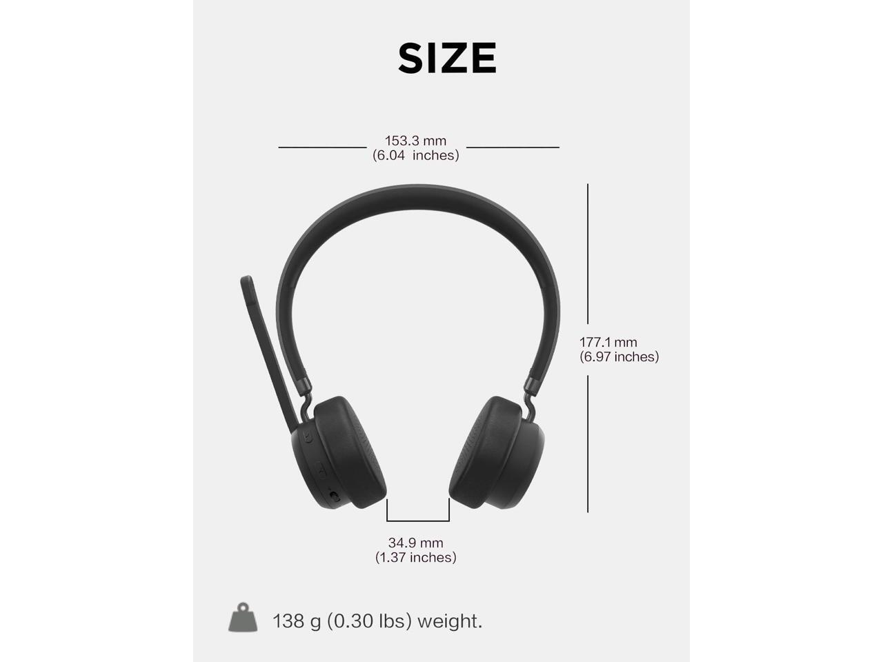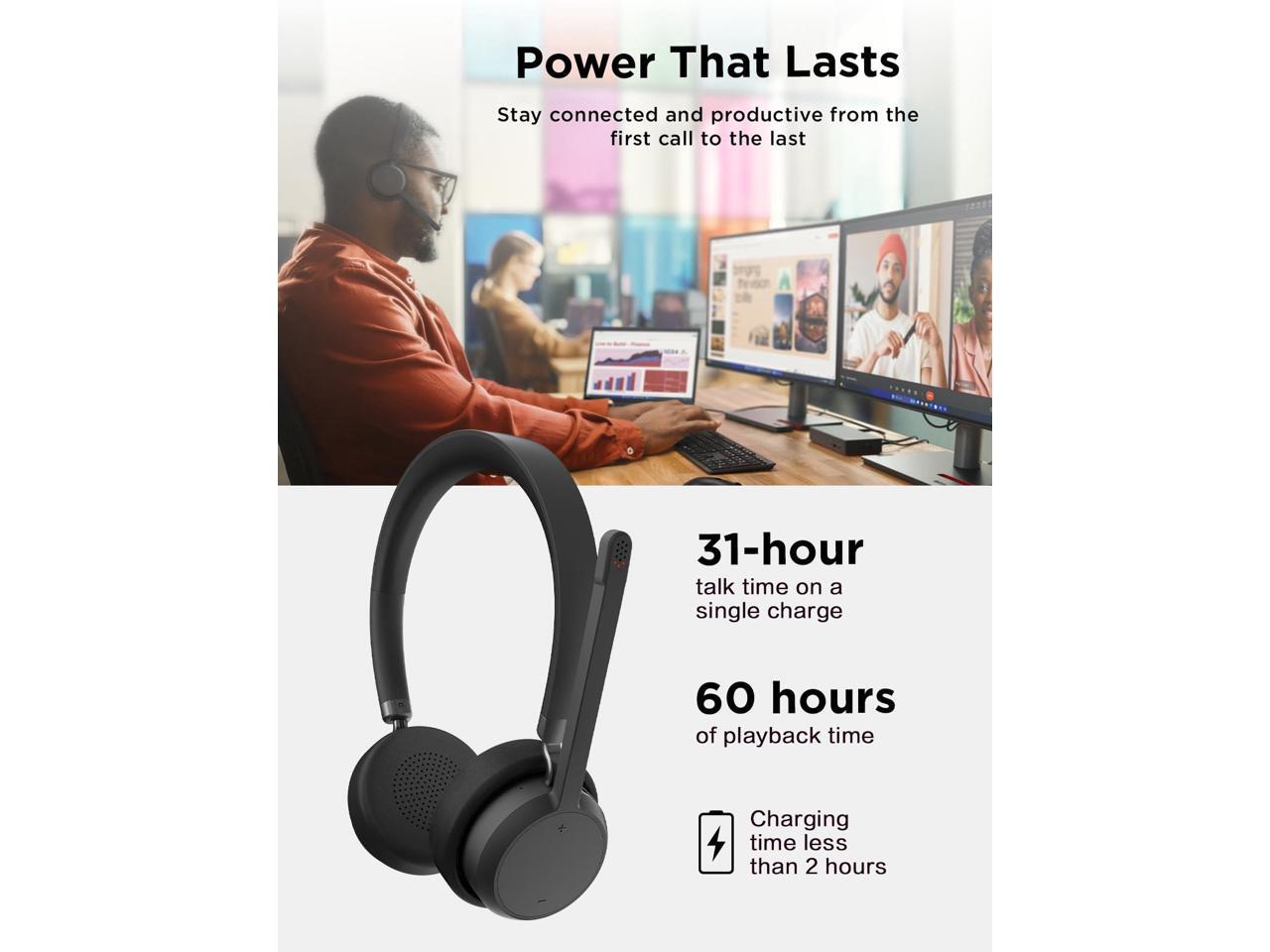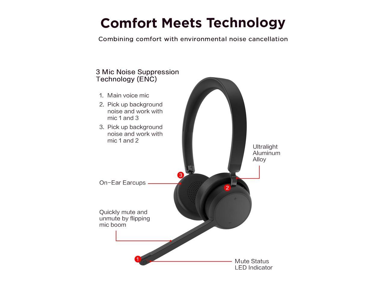 Lenovo Wireless Stereo Headset - Stereo - Wireless - Bluetooth - 98.4 ft - 32 Ohm - 20 Hz to 20 kHz - On-ear, Over-the-head - Binaural - Circumaural - 4.27 ft Cable - Noise Canceling - Black