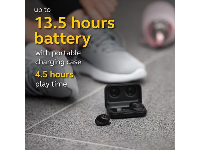 All-day power. Enjoy up to 9 hours of battery life ? 3 hours in the earbuds and an additional 6 hours in charging case.