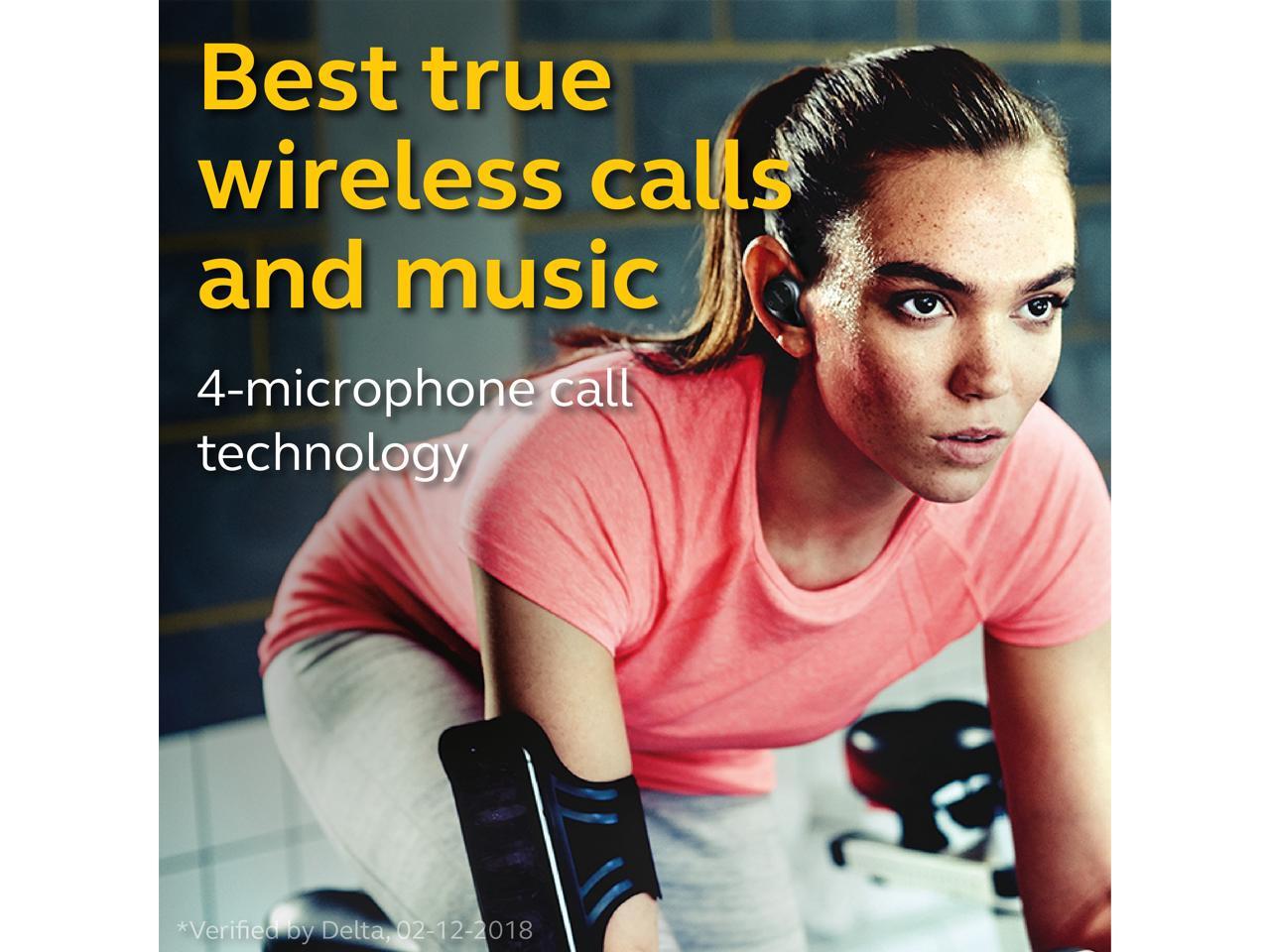 Superior sound for calls and music. Two microphones in each bud that work together to filter out background noise and ensure your voice is heard clearly.