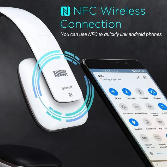 • Bluetooth Wireless NFC Headphones - Listen to audio from smartphones and tablets, tap to connect to NFC enabled devices