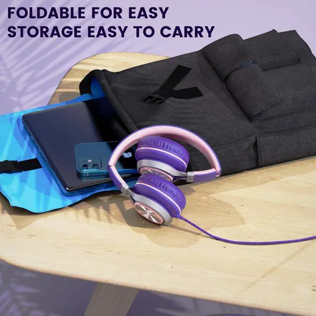 USB C Wired Headphones with Mic & Volume Control, Type C Tangle-Free Plaiting Line, Over/On-Ear Headphones for women/Teens, Lightweight Foldable for Smartphone, Tablet, Iphone 16/15 series(Pink-purple)