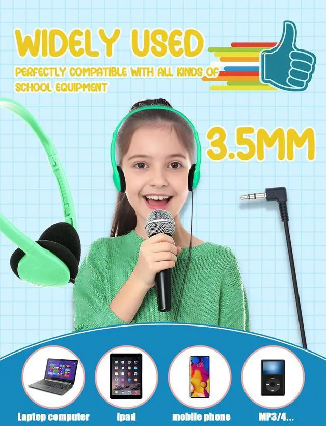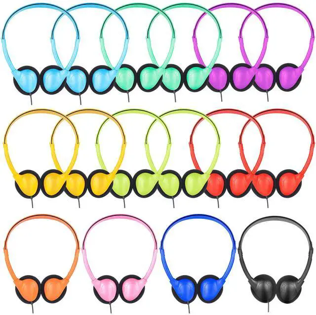 Bulk headphones for classroom with a 3.5mm jack that kids can plug into Chromebook computer laptop