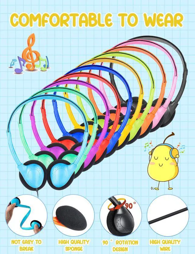 ZNXZXP 10 Pack Bulk Classroom Headphones for Students Kids School Wholesale Headphones Class Set 3.5 mm Jack for Chromebook Laptop PC Computer Mixed Colors (B)