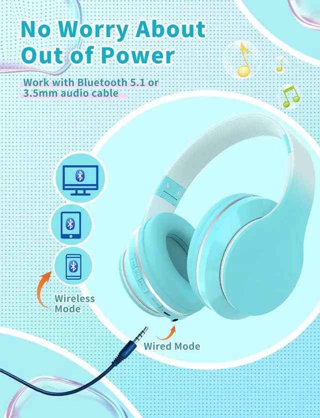 [(Wireless&Wired Mode)] With Bluetooth 5.1 technology, these kids wireless headphones are compatible wi