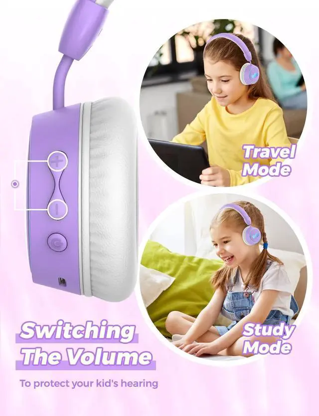 [(Superior Hearing Protection & Volume Control)] Safeguard your child's sensitive hearing! These toddler headphones (suitable for 2+ year old and for 3 year old) incorporate an 85dB volume limiter (meeting WHO recommendations), protecting young ears even during extended use. The easy-access volume controller lets parents adjust levels, ensuring safe listening with every use of these kids bluetooth headphones and kids wired headphones