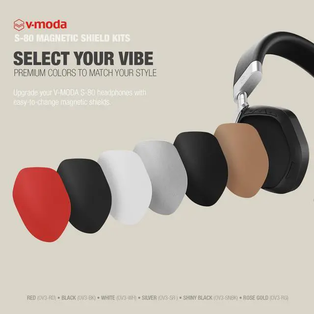 S-80 is carefully crafted to maximize the impact and energy of modern electronic music, with punchy low end, smooth midrange, and clear highs. Via the dedicated mobile editor app, users can shape the response for their style and taste with a custom EQ curve or one-touch presets for pop, hip-hop and other genres. S-80 is available in White with silver metal hardware, Black with silver metal hardware, and Black with rose gold metal hardware. Interchangeable magnetic shields are available in a variety of different colors, and users can further personalize the shields with V-MODA's unique laser engraving and color printing service.