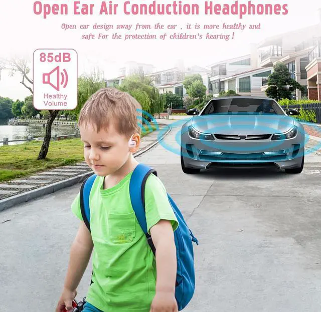 [Super Safe Open-ear Headphones] Kids headphones with open-ear design and air conduction technology, it not only keeps your ear canal clean but you can be aware of your surroundings to be more alert when listening to music or making a call on the way after school. open ear headphones eliminate potential dangers and provides maximum protection for your health and safety.
