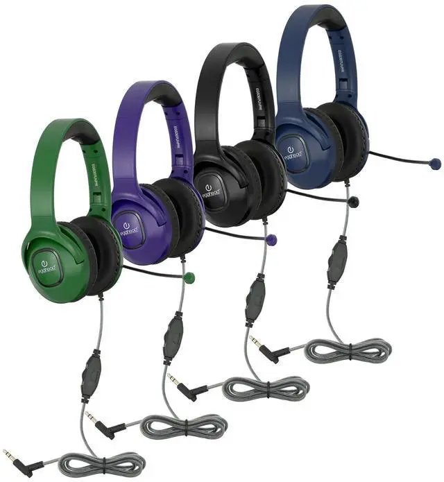 Egghead (r) Premium Foldable Headset with Leatherette Ear Cushions, Adjustable Padded Headband, 360deg Pivoting Uni-Directional Microphone, and 3.5 mm Slim Barrel Plug, Pack of 10