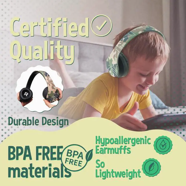 • [(Wireless, Wired and Micro SD mode)] - Let our kids wireless headphones provide joy to your kids any time they listen to their music. With P2 you have the freedom to pair up to 2 devices at the same time via Bluetooth and enjoy wireless stereo and video. The kids headphones are also audio cable enabled, so you can easily use them with any phone, tablet, laptop, PC and TV. (To pair with TV, you would need additional Bluetooth adapter; Micro SD cards are accepted up to 32GB).