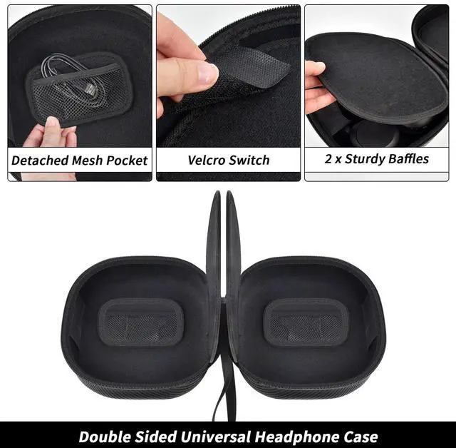 Flexible Interior Design Container for TOZO Headphones: Wireless headset case fit 2 headphones equipped with two partitions, convenient to neatly store and shield two pairs of bluetooth headphones. Both sides of storage box for sony headphone fitted with mesh pockets, suitably store accessories. The back of the mesh pockets equipped with adhesive, allow easily detached and stuck anywhere inside case for apple airpods max headphone, convenie