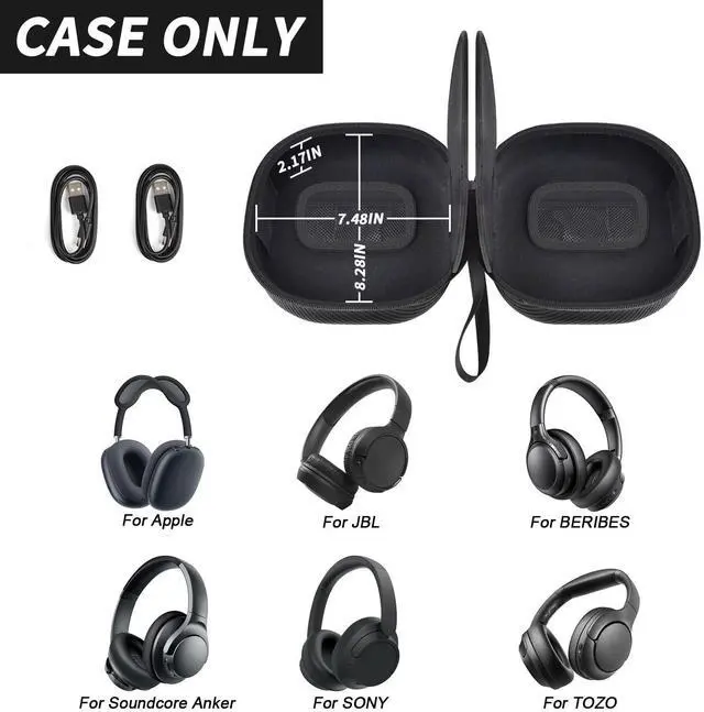 Strong Compatibility for 2 Headphones Storage Bag: Over ear headphones case compatible with JBL510BT/520BT/720BT/ for Sony WH-CH520/WH-CH 720N/ for BERIBES/ for Soundcore Life Q20/Q20i/Q30/Q35/Q45/Q11i/ for TOZO/ for Bose/ for Apple wireless bluetooth headphone, also for other brand muti-angle rotation headphones. With a large capacity, Bluetooth headphone organizer easy to store 2 wirless headphones of different brands and accessories simultaneously. External dimension: 7.68*8.27*4.72 inches (only case, exclude devices and accessories)