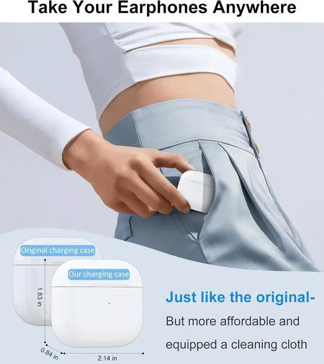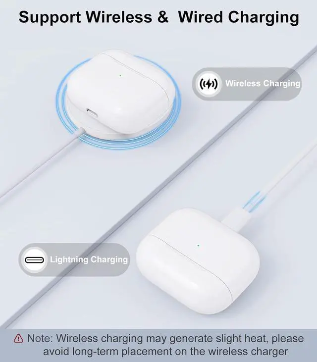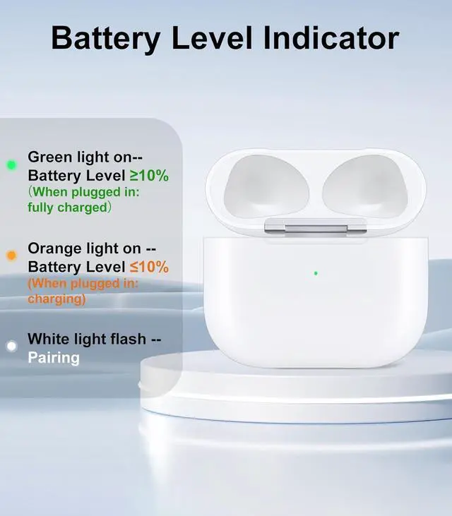SUPPORTS WIRELESS AND WIRED CHARGING: Wireless replacement charging case is compatible with Airpods 3rd generation charging case. Replacement charging case supports both wireless and wired charging. Wireless charging case is compatible with a variety of QI wireless chargers, simply place it on the wireless charging pad or charging mat and start charging. It's effortless and efficient.