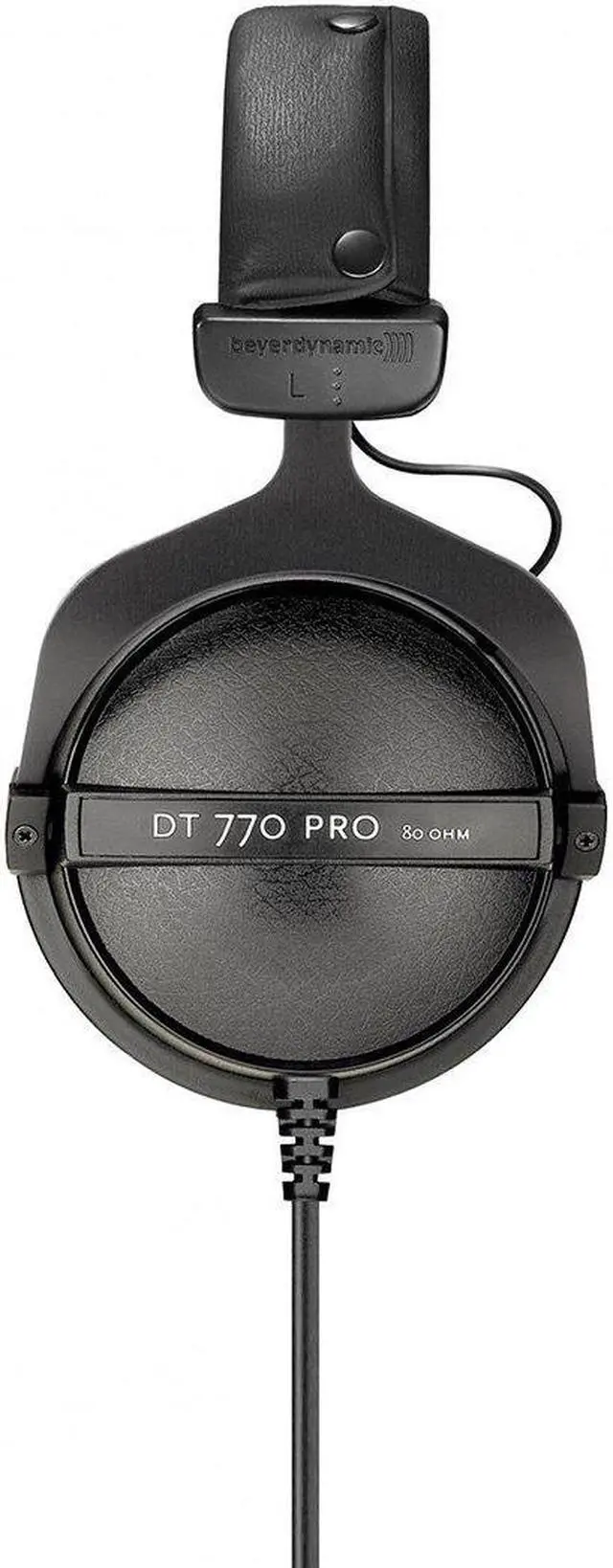 Designed for critical music and sound monitoring. The single-sided cable makes the handling of the headphone easy. The cushion system allows the Beyerdrynamic DT 770 PRO to be used comfortably for long periods of time. The DT 770 PRO is a closed dynamic headphone of exceptional quality suitable for the most demanding professional and audiophile applications. The long term comfort and accurate performance make the DT 770 PRO the perfect monitoring headphone for recording studios, post production or broadcasting situations. The low mass coil and diaphragm assembly produce a transient performance equaled only by electrostatic earphones, and, in combination with a carefully tailored frequency response offer a natural and balanced sound.