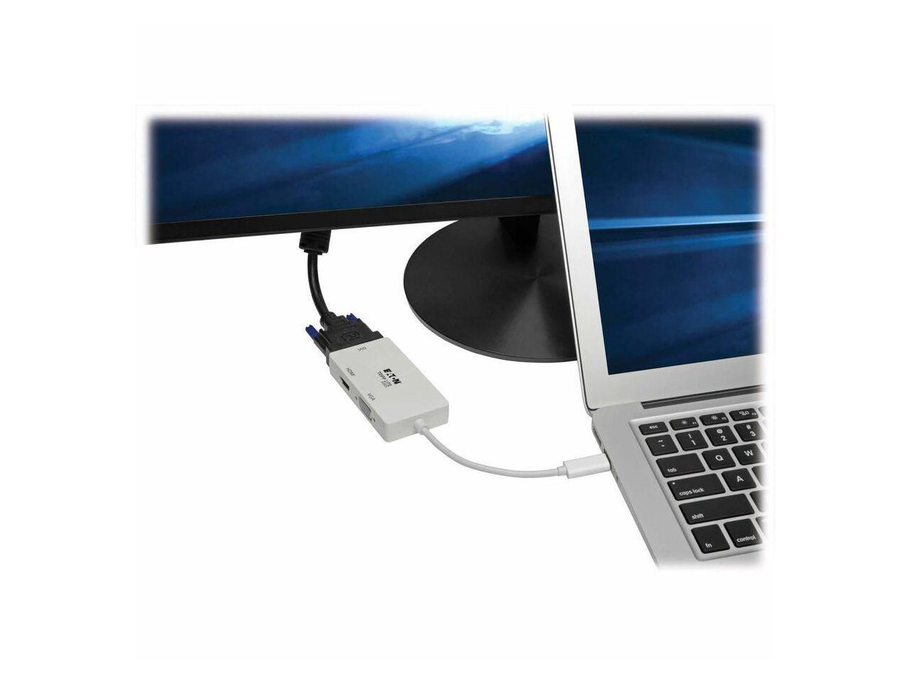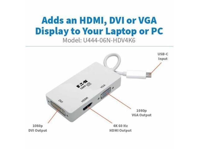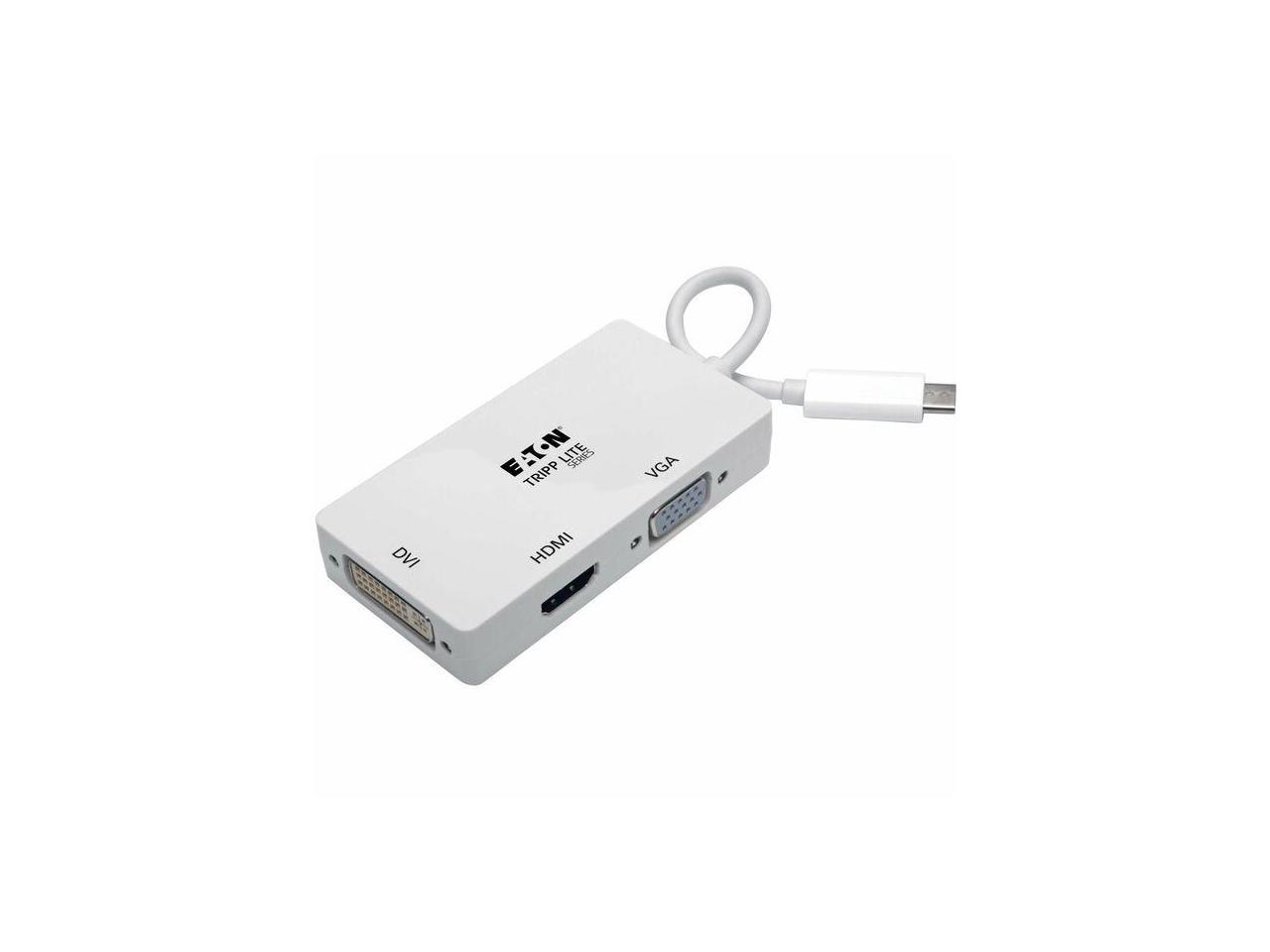Eaton Tripp Lite Series USB-C Multiport Adapter (M/3xF) - 4K 60 Hz HDMI, 1080p VGA + DVI Ports, White - 1 x USB 3.2 (Gen 1) Type C - Male - 1 x DVI-D (Dual-Link) Digital Video - Female, 1 x 15-Pin HD-