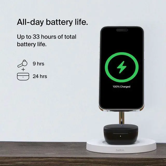 Performance: Unmatched performance. Since 2023, all SoundForm products are fine-tuned with Belkin Signature Sound, a frequency balance engineered to deliver high-fidelity audio at safe volume levels. Dive into crystal-clear sound with our earbuds. Advanced noise cancellation ensures an uninterrupted audio journey, letting you feel the rhythm, not distractions.