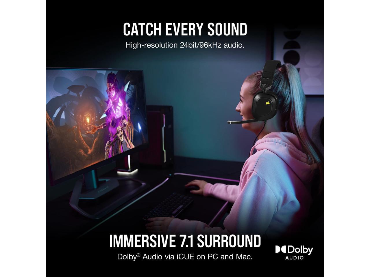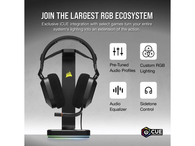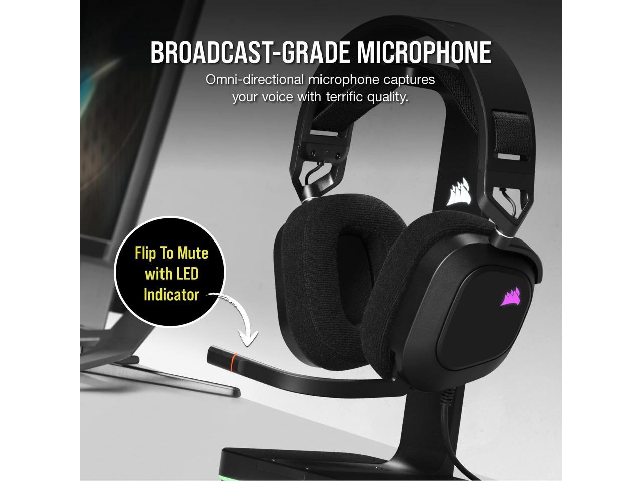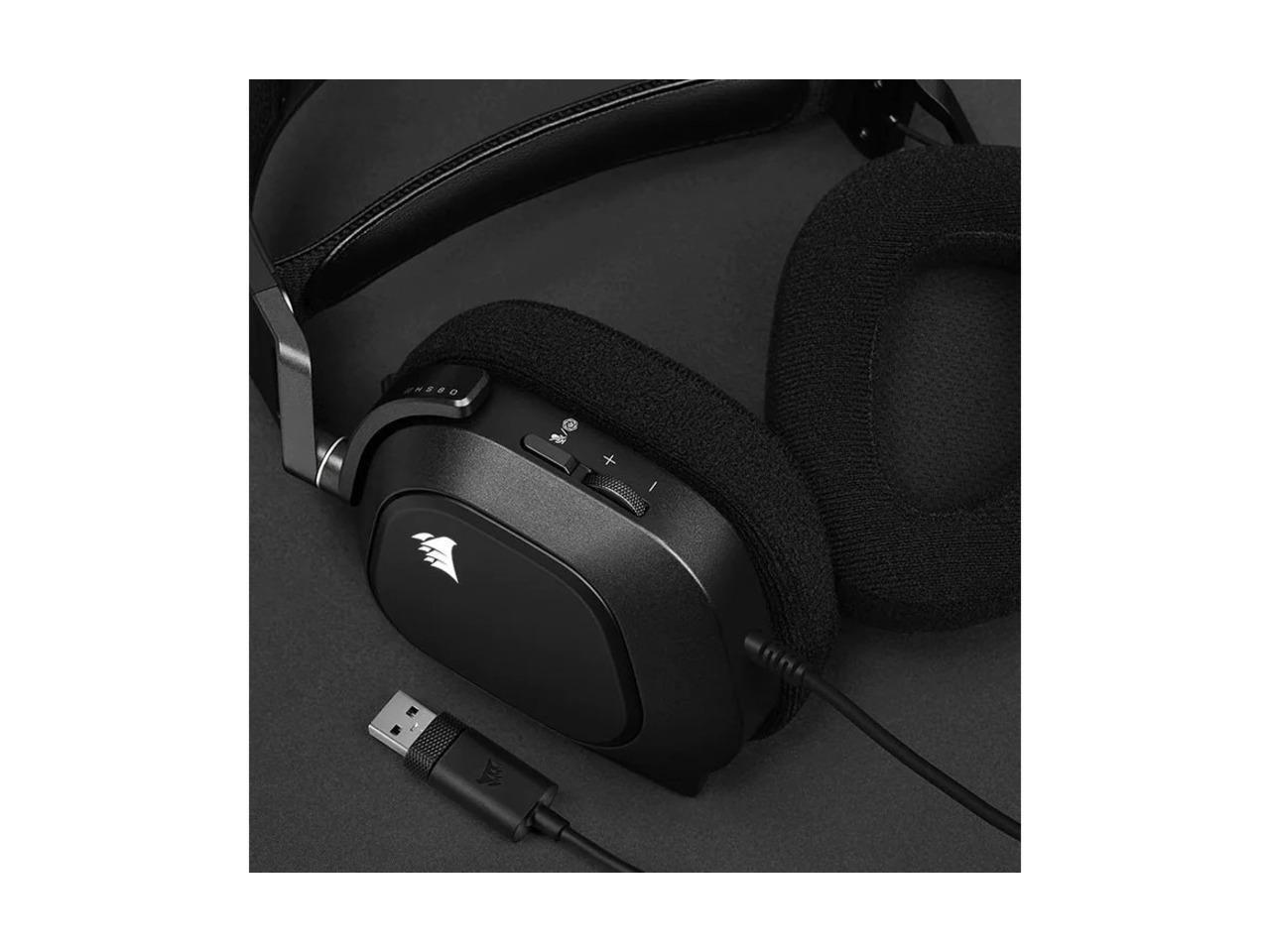 Corsair HS80 RGB USB Wired Gaming Headset - Carbon - Stereo - USB Type A - Wired - 32 Kilo Ohm - 20 Hz to 40 kHz - On-ear, Over-the-head - Binaural - Ear-cup - 5.91 ft Cable - Omni-directional Microph