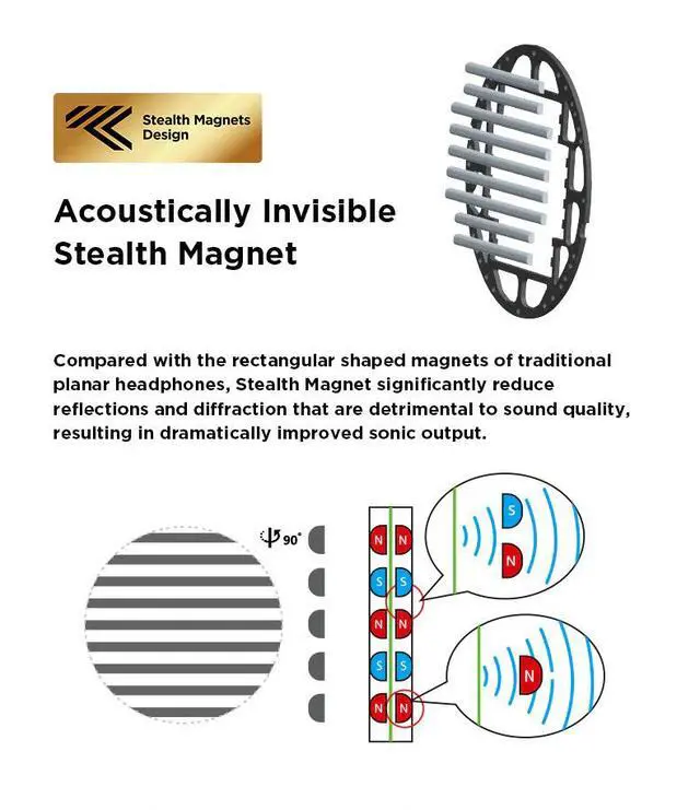 What makes the Sundara Closed-Back headphones different from other headphones on the market is their use of a uniquely-shaped magnet that permits sound waves to pass through without causing interference. This ingenious design feature reduces wave diffraction turbulence and greatly minimizes distortion.