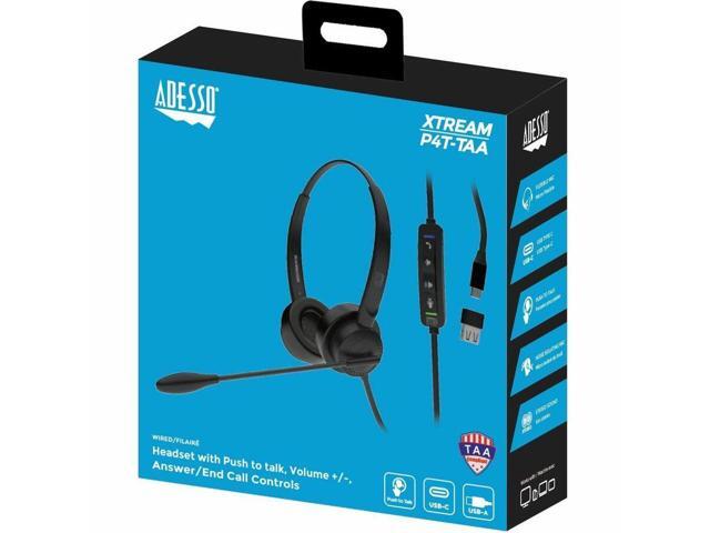 Adesso Xtream P4-TAA Over-the-ear Headset with Push to talk, Black