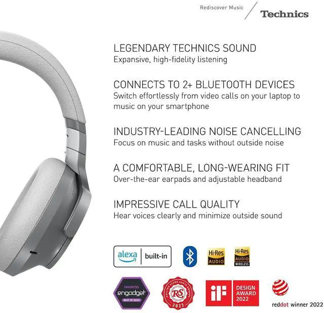 Enjoy legendary Technics sound quality in over ear headphones, with advanced noise cancelling technology and superior call clarity. Technics A800 Wireless Noise Cancelling Headphones allow you to hear music--and life--as it's meant to be heard. Enjoy unparalleled high fidelity, hearing every detail without interruption from outside sound. Whether you are at home, at work, working out, or traveling, the Technics EAH-A800 amplifies words and reduces surrounding noise for impeccable call quality on your phone and video calls, with the option to add more or less ambient sound to your experience.