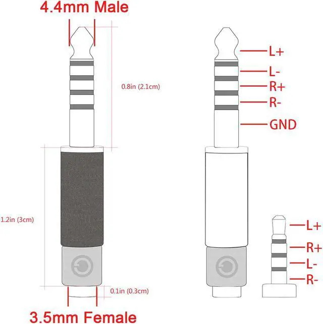- Type: 4.4 mm Male to 3.5 mm Female Headphone Balanced Audio Adapter