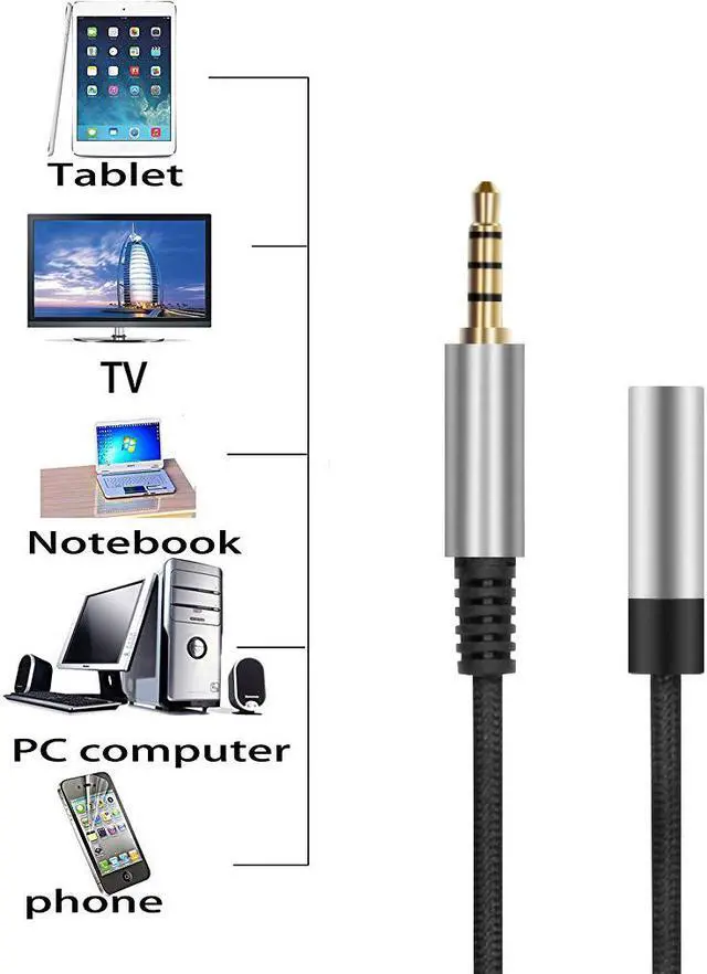 Geekria 3. 5mm audio extension cable extends the audio connection between your iPhone, iPad, iPod, media players, smartphones, tablet, and any other 3.5mm AUX jack, such as headphone amplifier, MP3 players, laptops, PCs, cellphones, tablets, home theaters, speakers, game console controllers, PS4, PS5, Switch, etc.