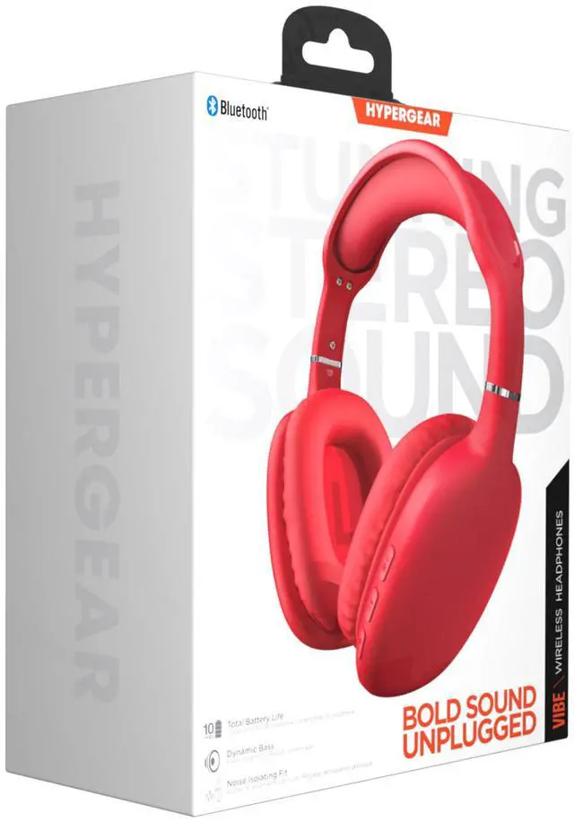 Immerse yourself in stunning stereo sound. The Vibe Wireless Headphones combine powerful full-range drivers, quick pairing Bluetooth technology, a premium plush over-ear design, and incredibly long-lasting battery life for the ultimate listening experience with no strings attached. Custom-tuned 40mm drivers deliver incredible life-like audio with high-fidelity, letting you hear every detail with deep, dynamic bass, detailed mids, and sparkling highs. Onboard controls allow you to quickly navigate your playlist, take and make calls directly from the ear cups. With quick pairing technology, the Vibe automatically looks for devices to pair with, making connecting to your devices hassle-free! Redefine over-ear comfort with an adjustable, softly cushioned headband and extra-large memory foam ear cups for a noise-isolating fit to seal in the rich, balanced sound.