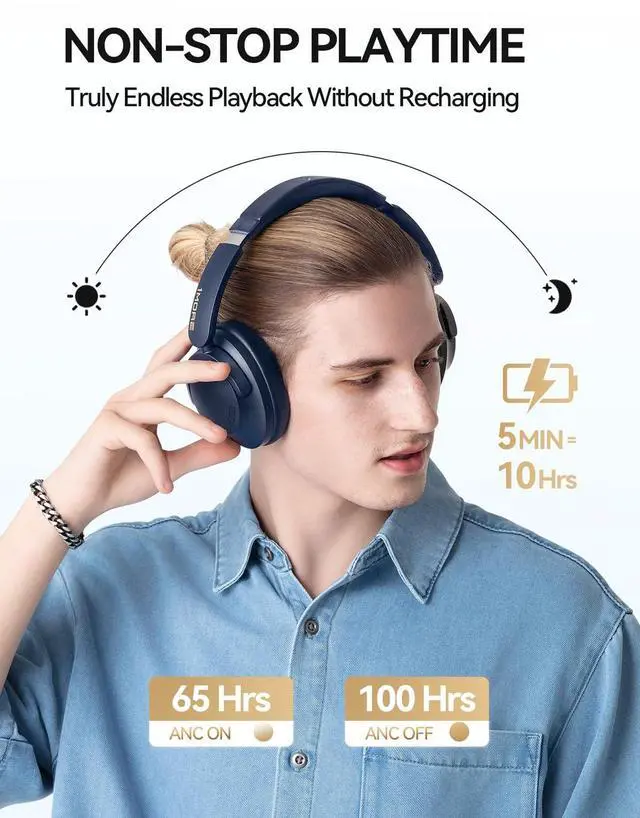 Immersive Sound with 40mm Drivers: These over ear bluetooth headphones feature 40mm diamond-like drivers that produce clear, balanced sound with a frequency response up to 40kHz, ensuring you hear every detail, from the deepest bass to the highest treble