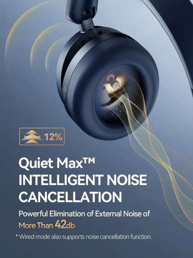 Premium Noise Cancelling Headphones: QuietMax ANC headphones create a 45dB noise-free zone, making these the perfect travel noise cancelling headphones for planes, trains, and busy streets.
