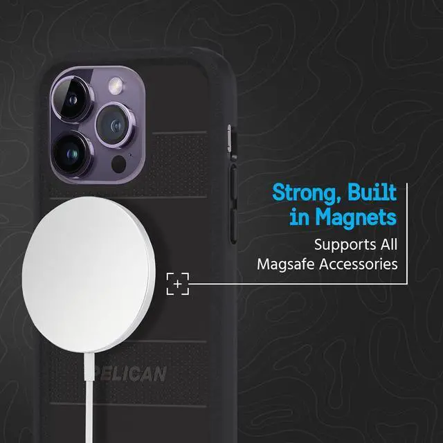 Protector Series: This rugged Pelican case is designed for iPhone 14 Pro with a non-slip edge for a secure grip and a snug fit design, offering optimal protection and comfort; The anti-scratch coating ensures that your phone case looks newer for longer, while the raised edges on both the front and back protect the camera and screen