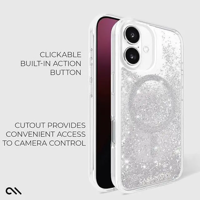Silver Splash: This iPhone 16 case for women features a unique glitter that creates a mesmerizing waterfall effect; The eye-catching glitter moves with you, adding a personalized aesthetic to every look; The glitter embedded inside the clear case ensures ease of use and comfort when carrying your iPhone 16