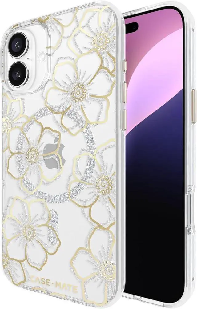 Sparkling Petals: This iPhone 16 Plus phone case features genuine sparkly rhinestones intricately arranged in stunning gold and silver floral patterns embedded inside the clear resin; These dynamic rhinestones shimmer with every movement, ensuring comfort while carrying your iPhone 16 Plus