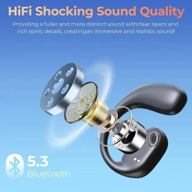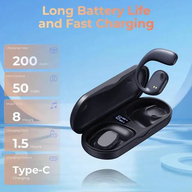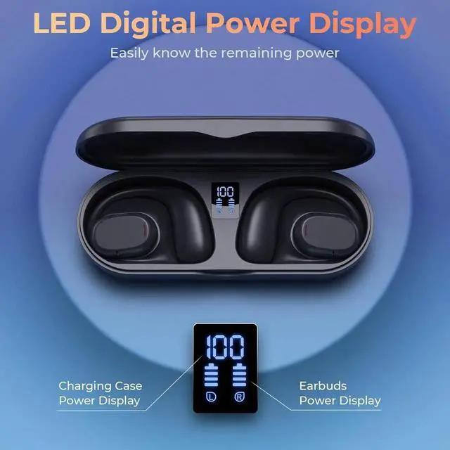 Wireless Earbuds | Bluetooth Headphones, Non-In-Ear Ear Protection Headphones Wireless Bluetooth 5.3 with LED Display, Up to 8 Hours Playtime Touch Control Sports Waterproof Earbuds Wireless Bluetooth