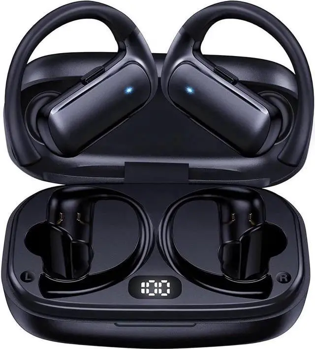 True Wireless Earbuds, Bluetooth Headphones with Earhook 30Hrs Playtime Sport Ear Buds IPX7 Waterproof Over-Ear Headsets with Microphones Earphones for Workout Fitness Running Gym Black