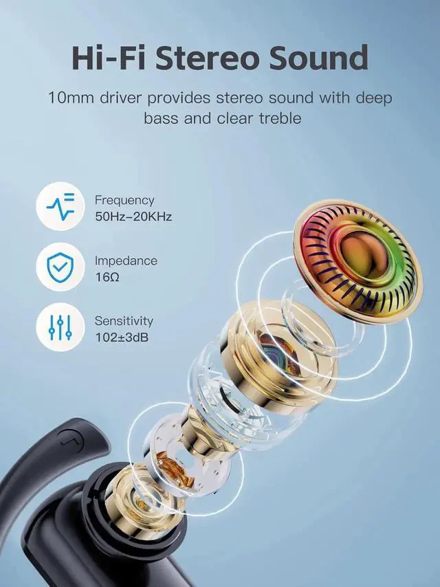 Hi-Fi Sound & Crystal-clear Calls: equipped with 10mm speaker drivers and volume-optimized active EQ, ensuring you enjoy high-fidelity sound with deep bass, well-defined mids, and sharp treble.