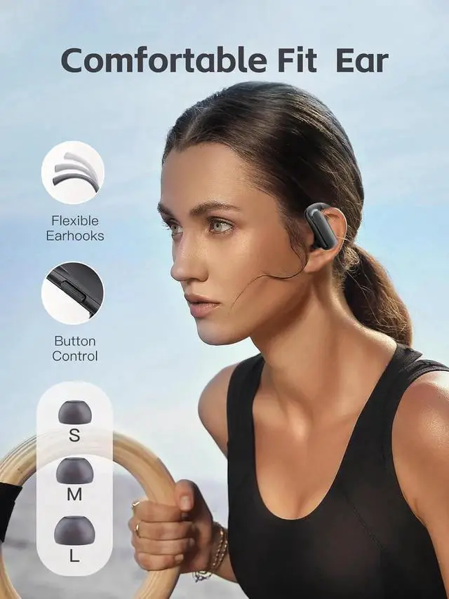 Tailored for Active Lifestyles & IPX7 Sweat-proof: The bluetooth earbuds are meticulously designed with flexible and secure-fit ear hooks, and they come with three sizes of ear tips (S, M, L) for a precise fit that remains comfortably snug.