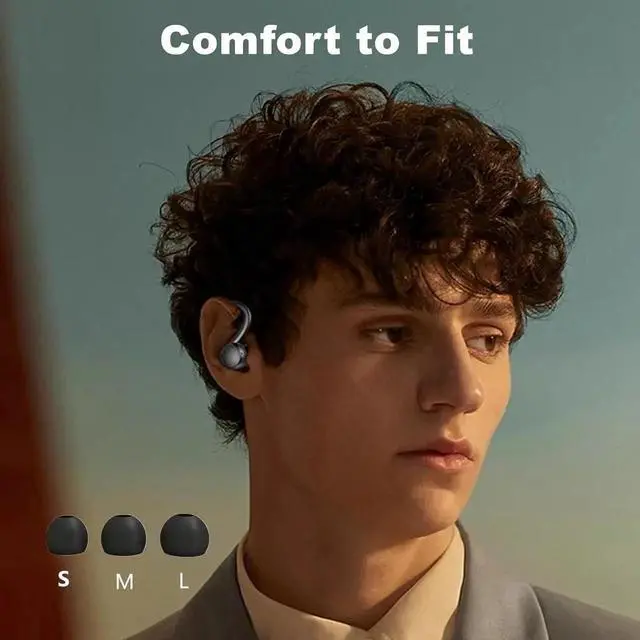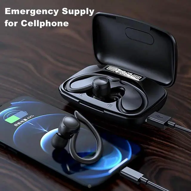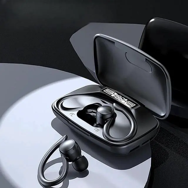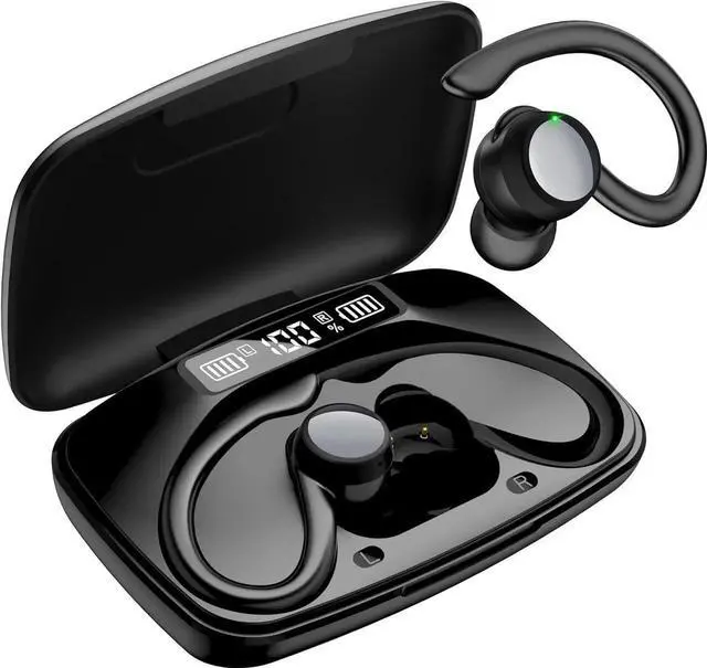 True Wireless Earbuds, Bluetooth Headphones 120H Playback Wireless Sports Earbuds with Over Ear Earhooks LED Display Charging Case IPX7 Waterproof Bluetooth Earphones for Running Workout, Black