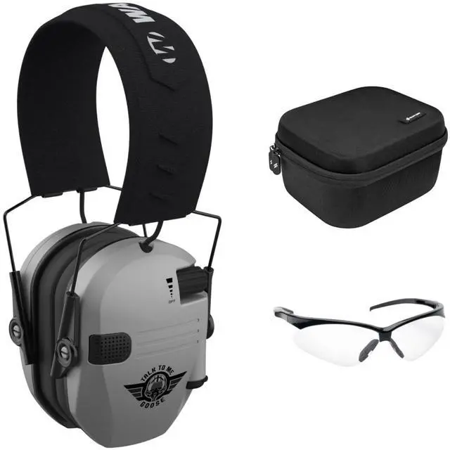 Walkers Razor Slim Electric Earmuffs with Cushioned Ear Cups and Speakers (Talk To Me Goose Gray)