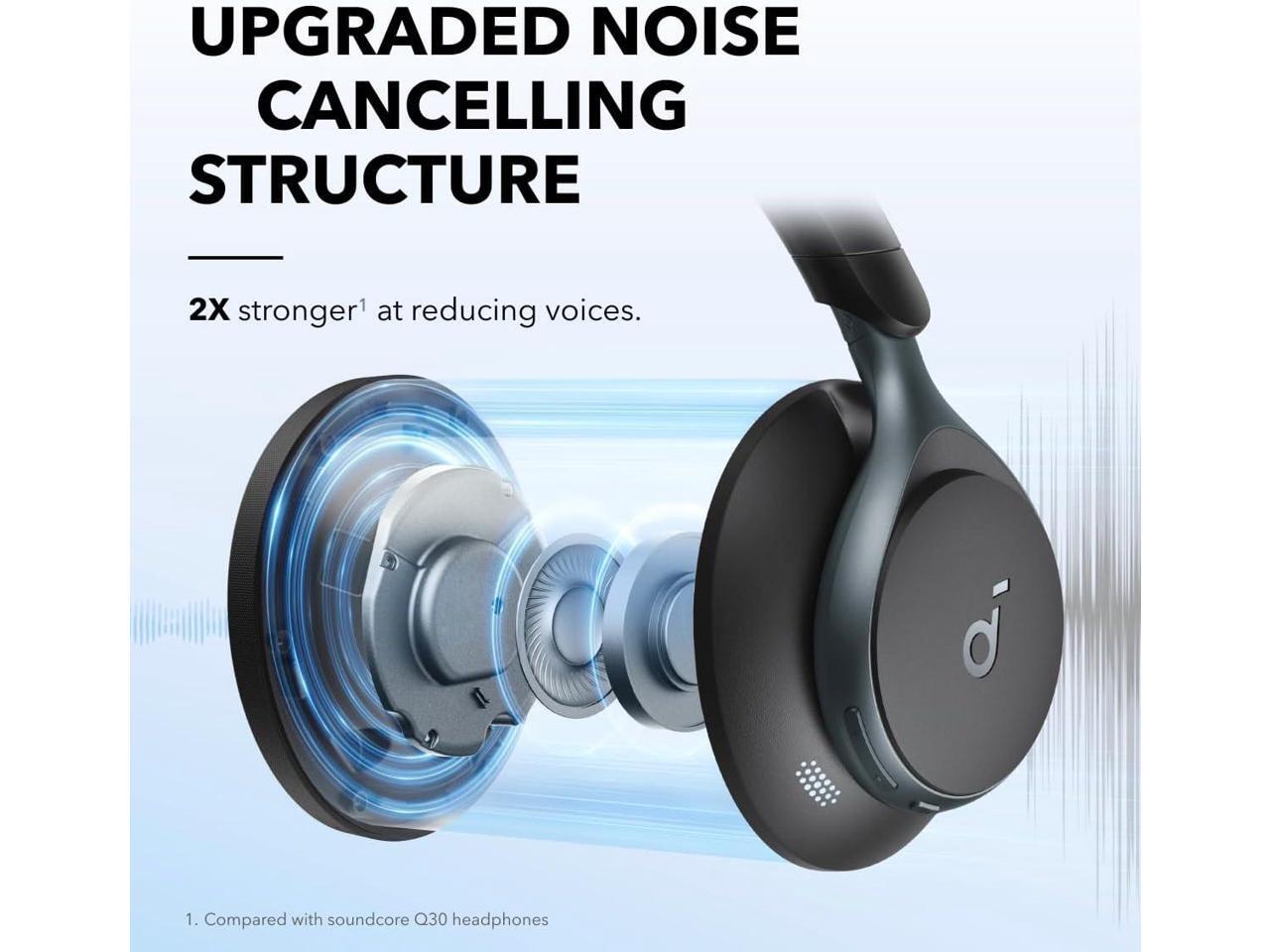 - 2X Stronger Voice Reduction: Stay focused during bustling journeys with our upgraded noise cancelling structure. Space One excels in blocking out mid to high-frequency sounds with 2X more* voice reduction. *Compared with soundcore Life Q30 headphones.