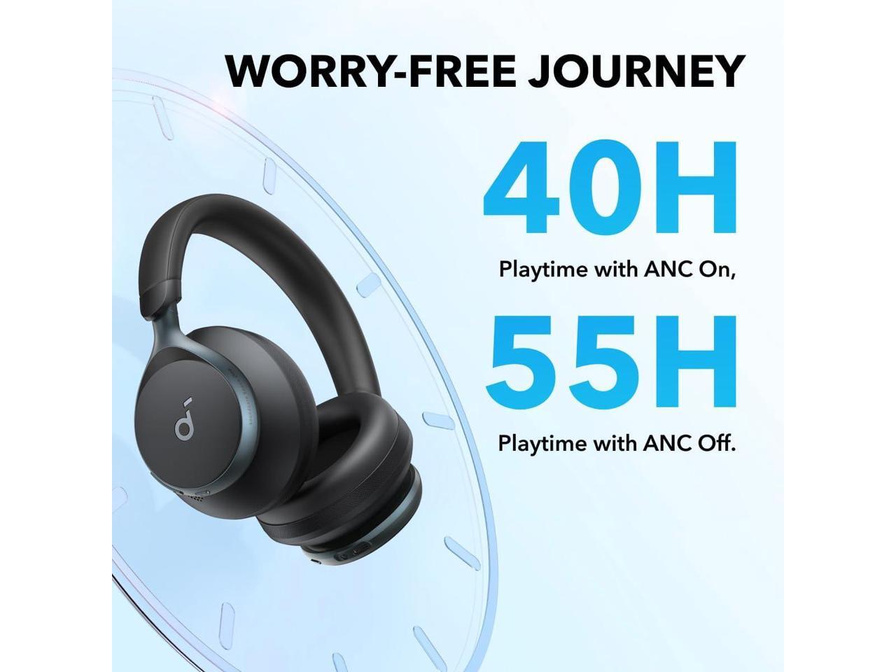 - 40 Hours of ANC Playtime: Embark on blissful journeys with 40 hours of playtime with ANC on. 55 hours of continuous music with ANC off ensures endless entertainment without battery concerns.