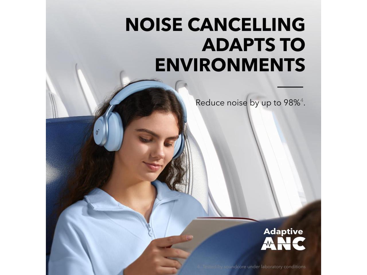 - Reduce Noise By Up to 98%*: Adaptive noise cancelling detects external sounds and sound leakage, auto-calibrating to deliver optimal noise reduction. Escape unwanted distractions, whether you're on a noisy train, in a bustling café, or your headphones aren't sitting on your ears properly.